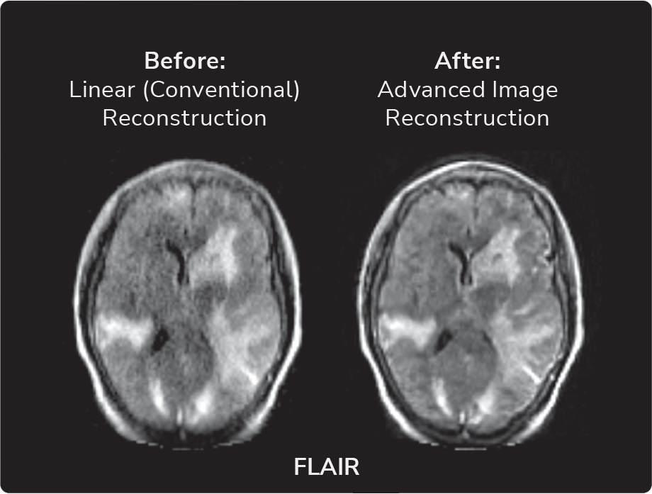 With the introduction of advanced image reconstruction, Swoop delivers crisp, clear T1, T2, and FLAIR images with the potential to provide clinicians with a greater degree of confidence in acute clinical diagnosis.