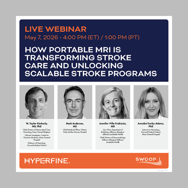 This webinar will feature groundbreaking clinical data on small stroke detection with portable MRI, real-world case studies showcasing the Swoop® system’s elevated image quality and a strategic perspective on stroke program development—offering insights to support the design, growth, and success of a modern stroke program.